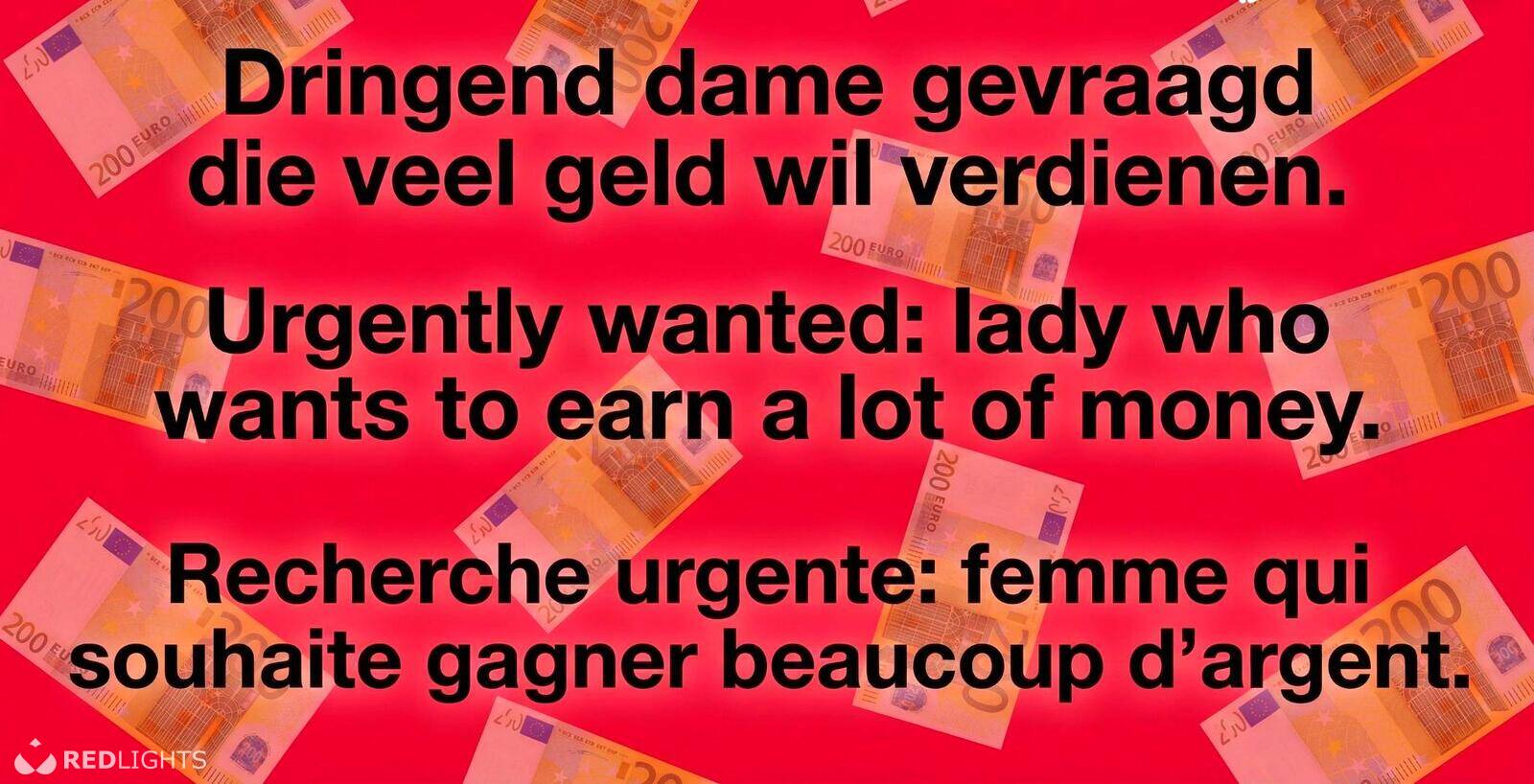Ben jij de UNIEKE 18+ dame die op korte termijn veel geld wil verdienen en zich daar volledig voor wil inzetten? Sta je open voor verschillende en afwisselende mogelijkheden en ben je flexibel ingesteld? Inwonen behoort tot de mogelijkheden, met een vaste privéchauffeur. Geen ervaring vereist, 100% discretie. Sms voor meer informatie.