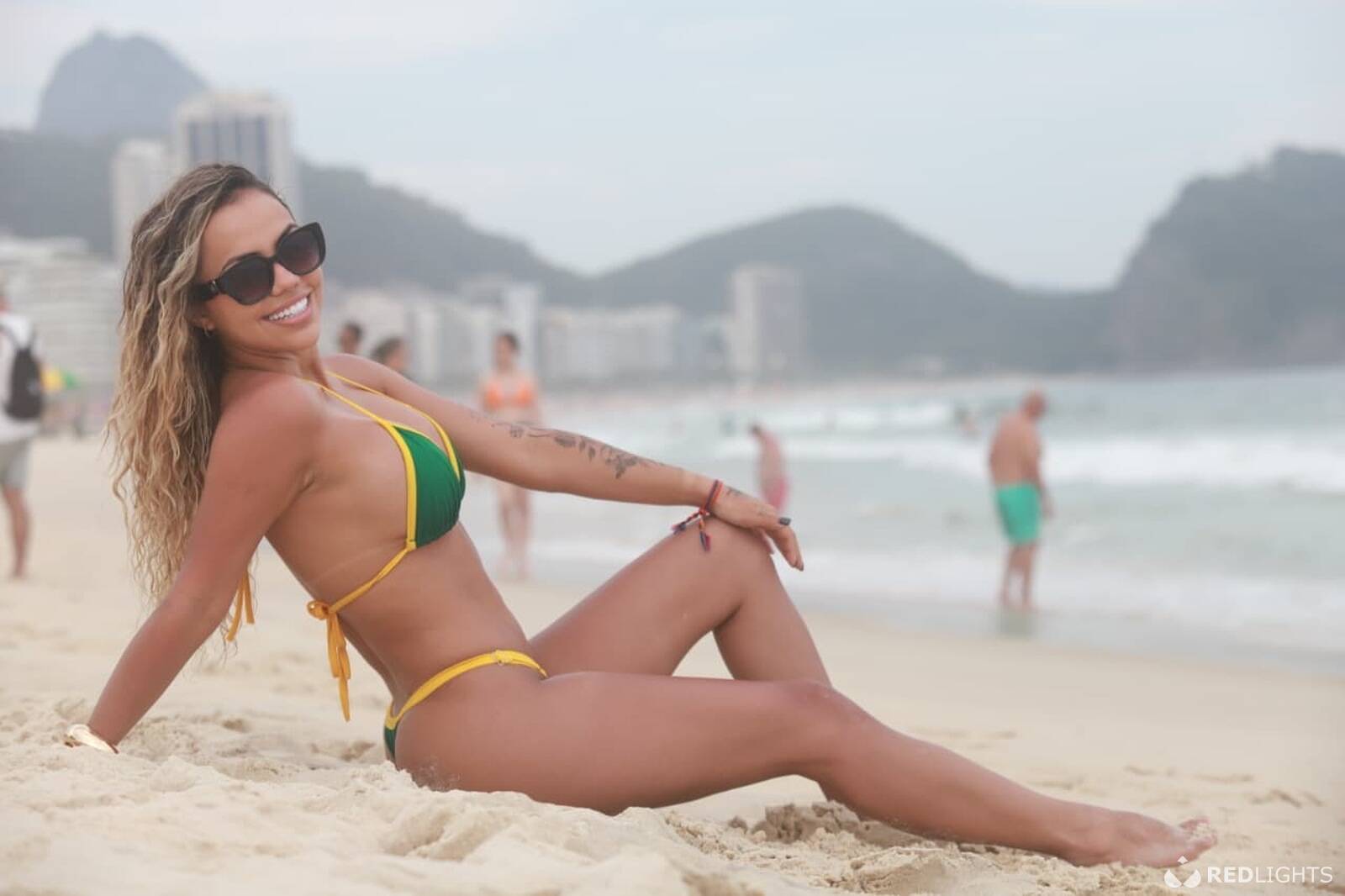 A slender and elegant figure, with soft curves and a slim waist that accentuates femininity. Wavy, tanned hair with blonde highlights that shine in the sun. Dark, radiant skin that looks as if it has been kissed by the sun. Smiling eyes and a full mouth that invites you to dream. A woman who exudes confidence and sensuality, with a presence that is both discreet and striking.
