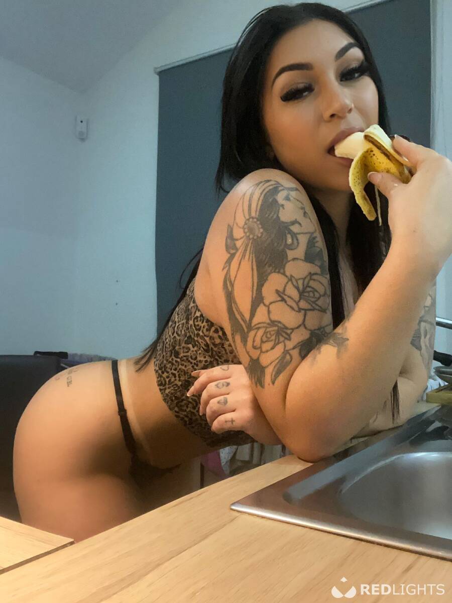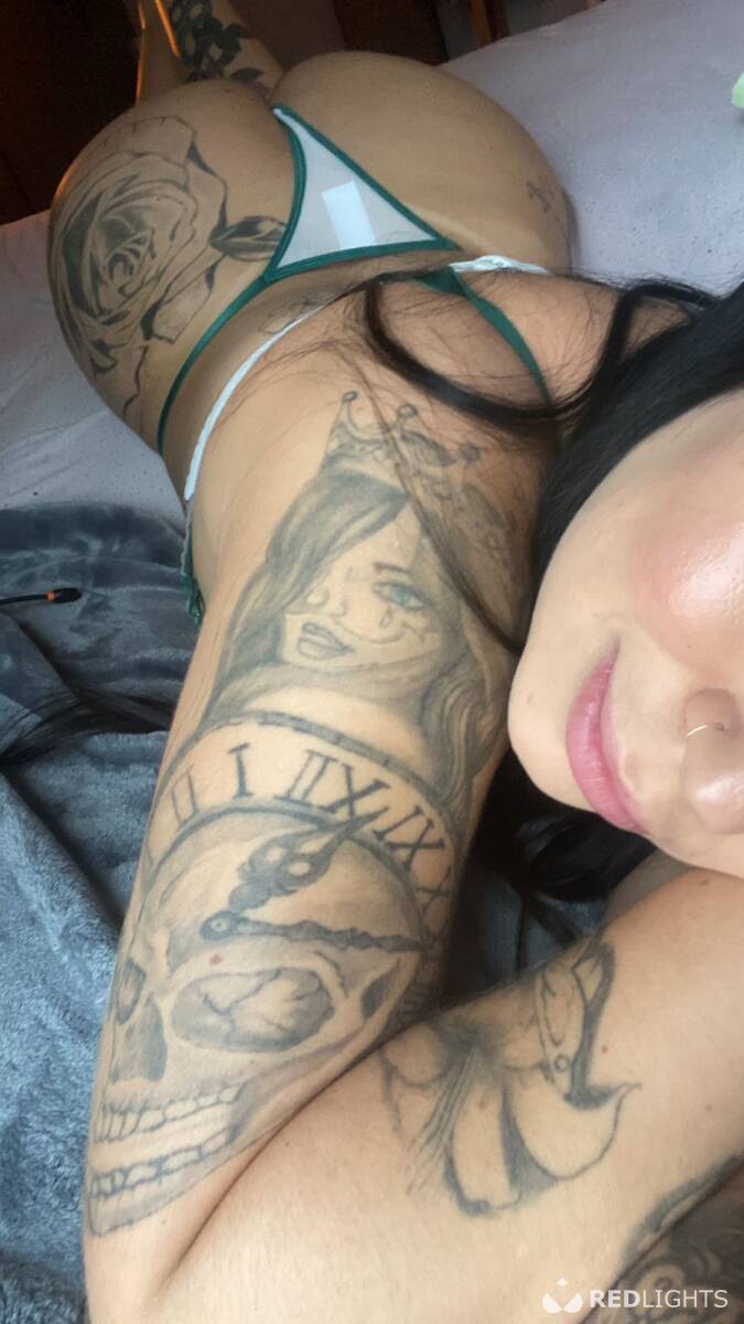 With long straight black hair that slides through the skin, this goddess exudes charm and attitude. His provocative tattoos tell secret stories, revealed only to those who deserve it. The tan marked by the bikini further enhances her natural curves and her desirable body.