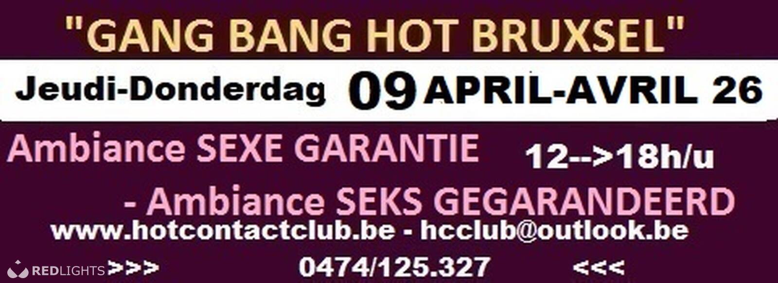 DINSDAG 21 APRIL 26 , Van 12u tot 18u " GANG BANG Orgie, T-Girls, Bisex en Curious BRUSSEL" SEX GEGARANDEERD MET MINIMUM 2-3 DAMES ERG WARM ..... M, Vr, T Girls en koppels Zonder schaamte en taboes, respect en een goed humeur! Beleef een onvergetelijk moment bij ons ... in een discrete appartement in het centrum van de stad( WTC) .